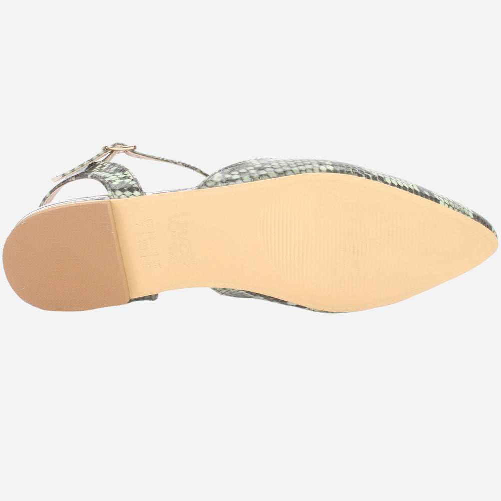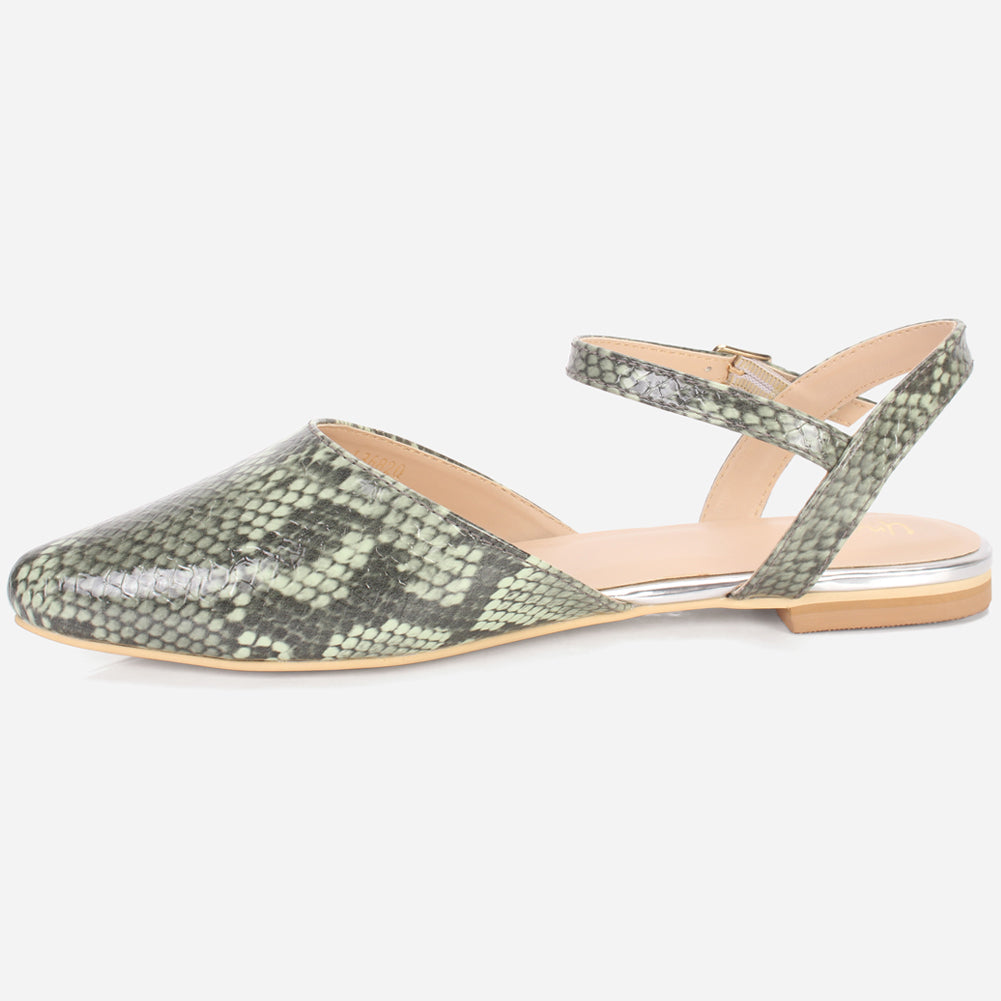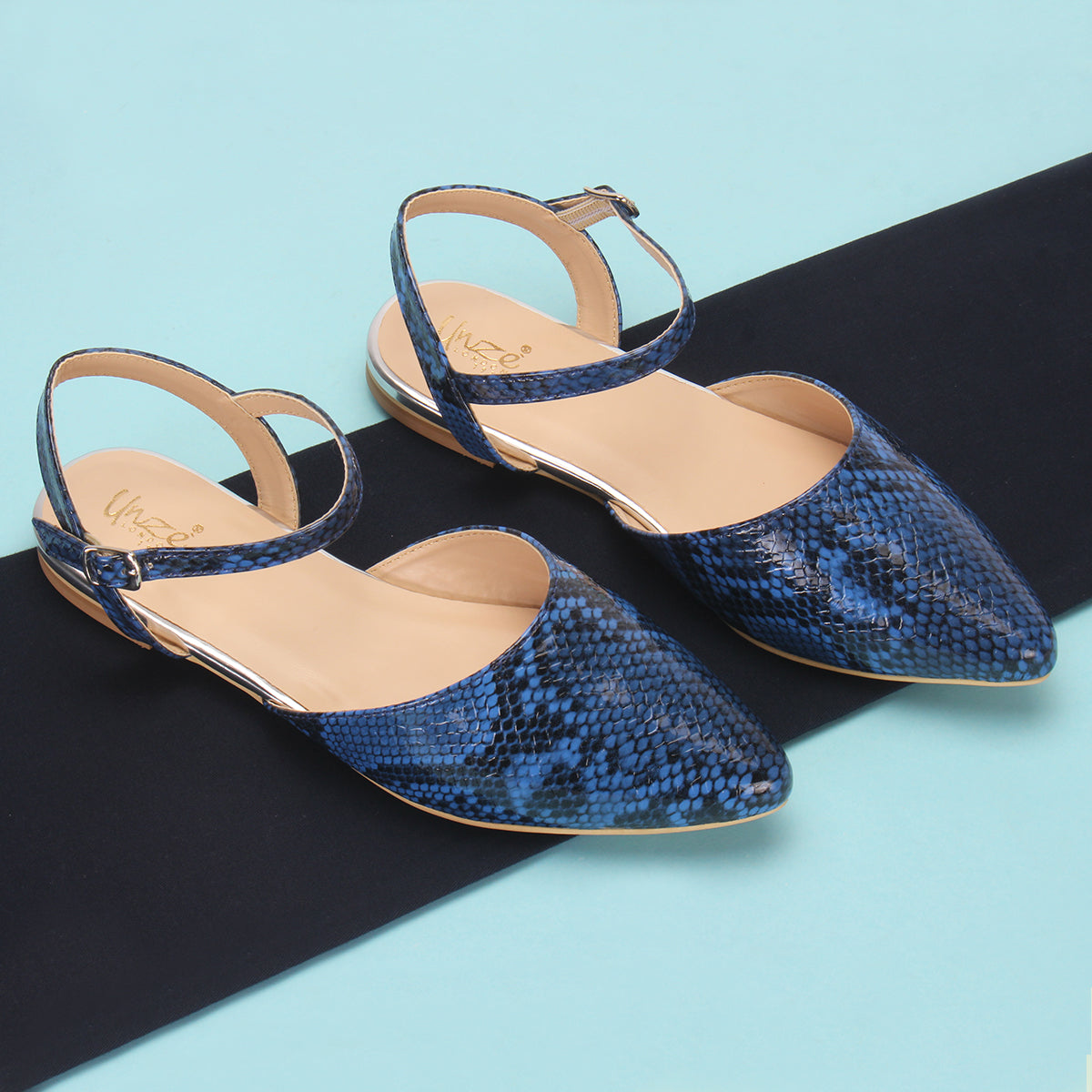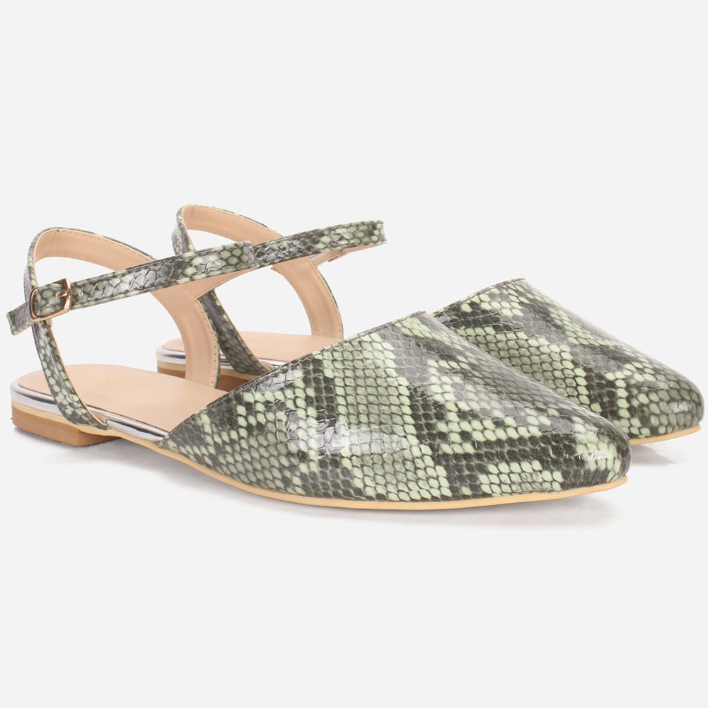 Perfectly glamorous with its sleek and subtle finishing beautifully poured by these sassy and shiny evening pointed sandals. These stylish sandals have toned textured upper with back strap and pointed toe. Back strap comes with adjustable buckle closure for customized fitting. Flat heel comes with slightly low block heel for easy walk. Lightly padded footbed just for comfort that comes with rubber sole with PU lining and synthetic upper.