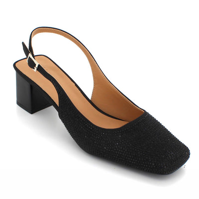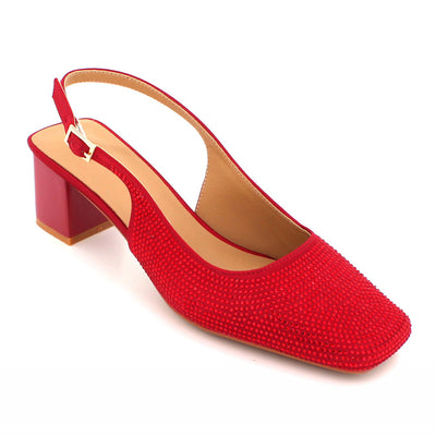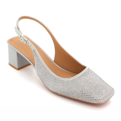 Step into these court shoes and make a statement at any wedding event. Elevate your style game this wedding season with these incredibly cute and chic court shoes. These fabulous and stunning sandals are adorned with shimmery detailing all over and feature a square toe design. The all-over glitter adds a touch of glamour, while the ankle strap with adjustable buckle closure ensures a secure fit. For added comfort and ease, the footbed is lightly padded. The wrapped and decorated low block heel adds a charming finishing touch.